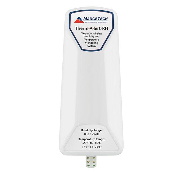 The MadgeTech Therm•A•Lert-RH is a humidity and temperature monitoring and alarming system, designed specifically for laboratories, warehouses and other environments where temperature and humidity monitoring is critical. The system can be used to monitor a single location, or expanded to monitor hundreds of locations over a broad area (additional MadgeTech wireless loggers and transceivers may be required).