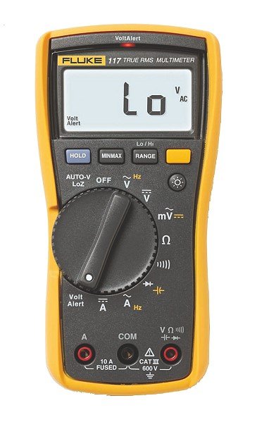 The Fluke 117 has the features and functions professional electricians need to get their job done. The Fluke 117 is the ideal meter for demanding settings like commercial buildings, hospitals and schools. The compact design makes it easy to hold and use one-handed. Integrated VoltAlert Technology allows testing for non-contact voltage directly from the meter to help get the job done faster. LoZ technology prevents false readings due to "ghost voltage" and helps accurately diagnose problems. Rely on the Fluke 117 to make your everyday measurements – up to 600 volts ac or dc, 40 MΩ, diode test and exceptionally fast continuity.