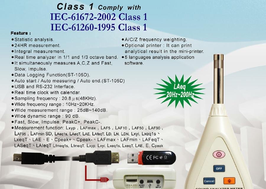 • Class 1 Sound Level Meters (A,C,Z Frequency)