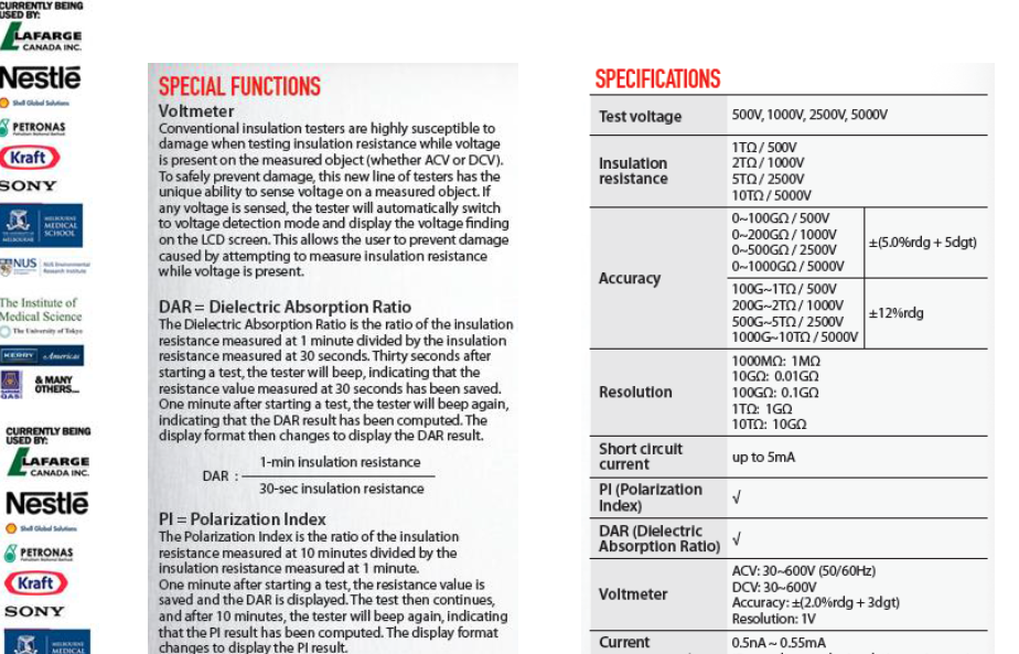 500V, 1000V, 2500V, 5000V |
