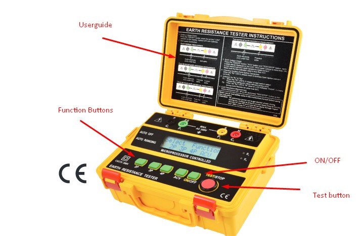 ● Earth testing at 2Ω, 20Ω, 200Ω, 2000Ω.