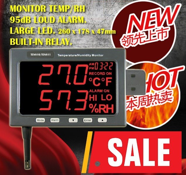 - Complete environmental monitor and alarm - Wall-Mounted LED type, easy reading - Alarm set for Hi and Low limit-Temperature and Humidity - LED displays real time data
